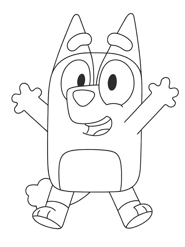Male jetzt die Ausmalseite von Bingo Heeler aus. Oder male eine der anderen lustigen 18 Bluey Ausmalseiten auf besteausmalbilder.de