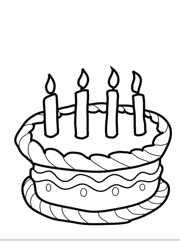 Ausmalbild Geburtstagstorte mit 4 Kerzen
