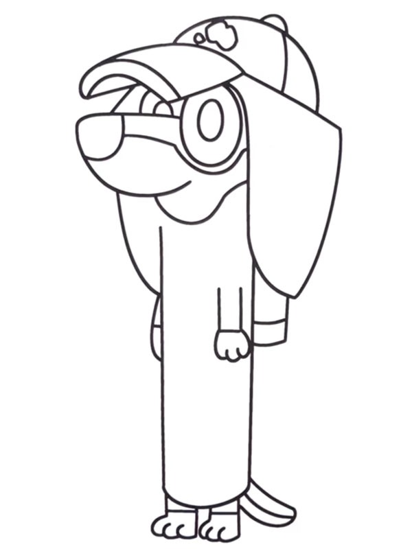 Male jetzt die Ausmalseite von Hund Snickers aus. Oder male eine der anderen lustigen 18 Bluey Ausmalseiten auf besteausmalbilder.de