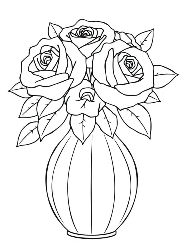 Male jetzt die Ausmalseite von Rosenstrauß in Vase aus. Oder male eine der anderen lustigen 34 Blumen Ausmalseiten auf besteausmalbilder.de