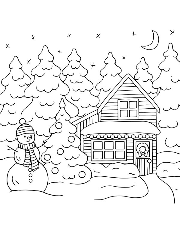 Male jetzt die Ausmalseite von Weihnachtslandschaft aus. Oder male eine der anderen lustigen 90 Natur Ausmalseiten auf besteausmalbilder.de